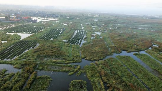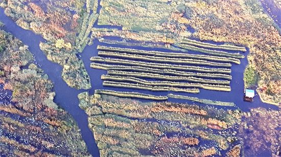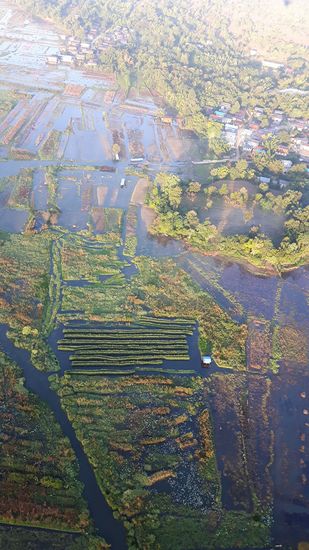 wir fliegen über die schwimmenden Gärten, die von oben betrachtet so anders aussehen als vom Wasser aus.