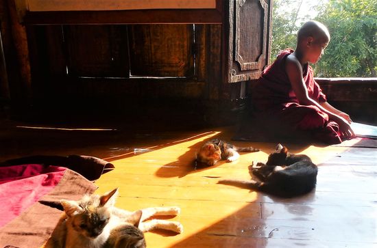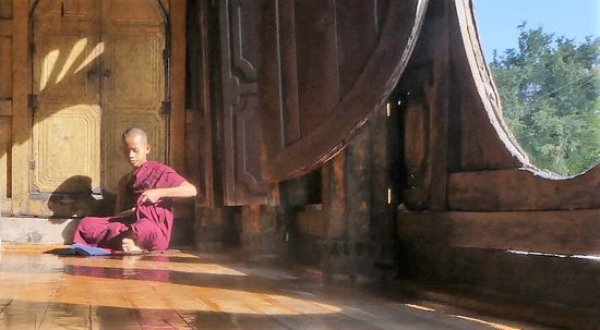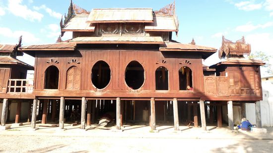 Ich mache mich auf Richtung Teakholzkloster, Shwe Yan Bye, das mit den ovalen Fenstern,
