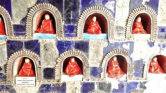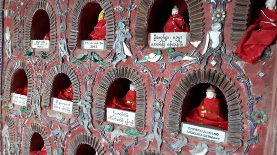 In der Pagode nebenan ganz viele Buddhastatuen, die man wohl mieten/kaufen? kann. Um dort für sein Seelenheil zu beten.