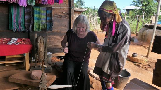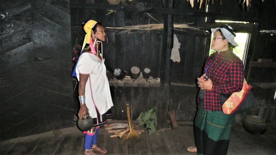 Mit Mary gehe ich zum ersten Haus einer Langhalsfrau. Schon auch ein bischen mit Herzklopfen, mich an die Situation am Inle-See erinnernd.