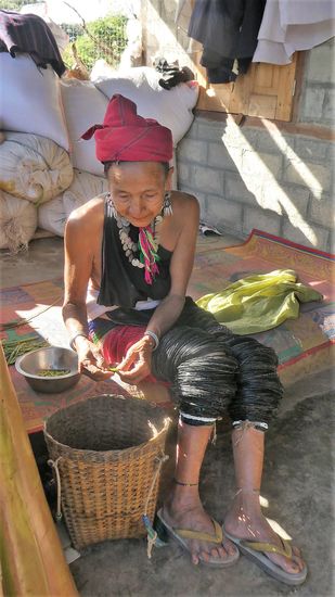 Sie ist stolz, ihn zu tragen und will ihn auch nicht ablegen. Ihre Schwester kommt dazu. Sie hat Bohnen im Garten geerntet. Beide sind die letzten in der Familie, die den Halsschmuck tragen. Ihre Töchter haben kein Interesse daran, und es wird auch keinerlei Druck ausgeübt, ihn tragen zu müssen. Es ist eine freie Entscheidung. Irgendwann werden sie ausgestorben sein.