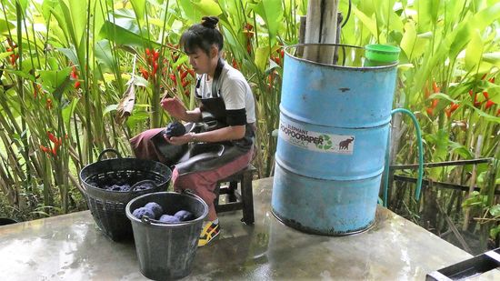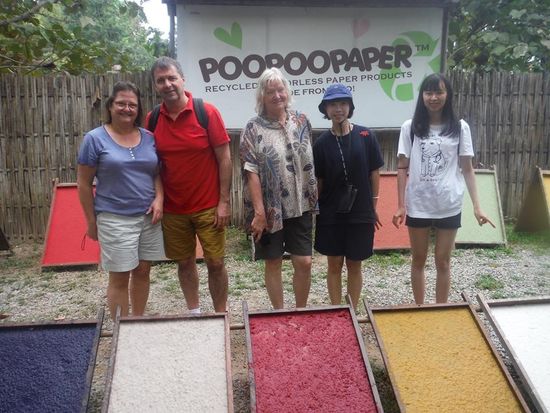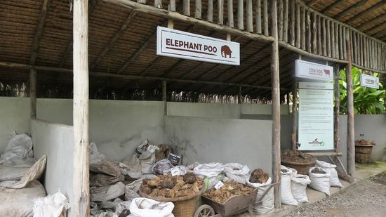 Wir fahren zu einer Elephant Poo Paper Fabrikation.d.h. hier wir aus Elefantenschitte