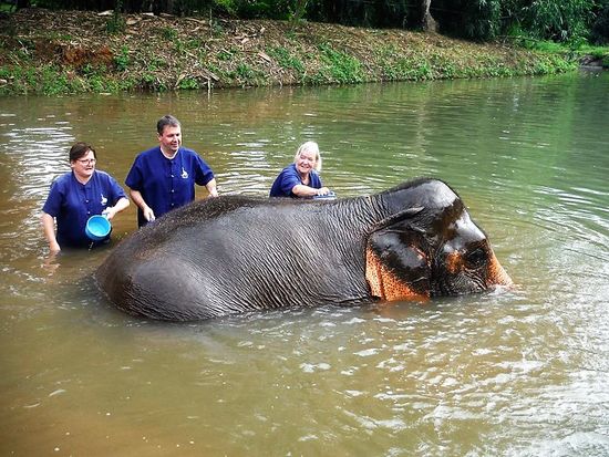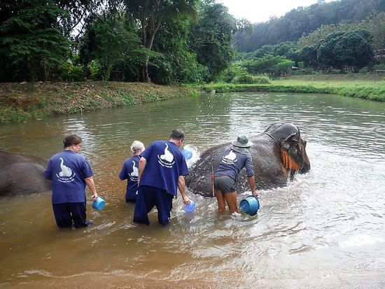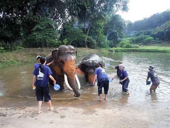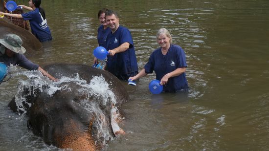 Das Highlight des Tages dann, als wir zu den Elefanten ins Wasser steigen, sie bespritzen und abschrubben dürfen. Dass da dann manchmal ein bischen Elefanten Poo im Wasser schwimmt, ist nicht wirklich schlimm. Am Ende erwartet uns denn dann eine saubere Dusche.
