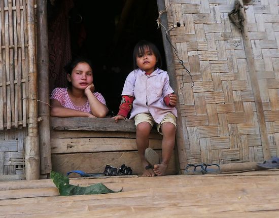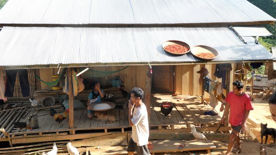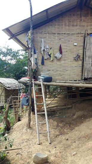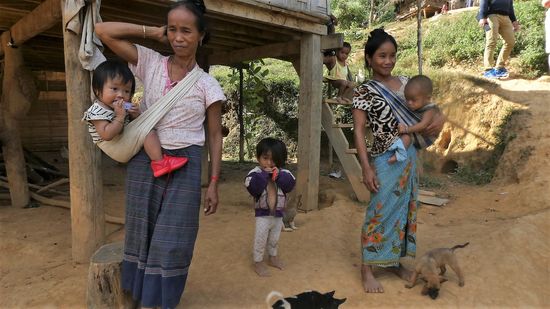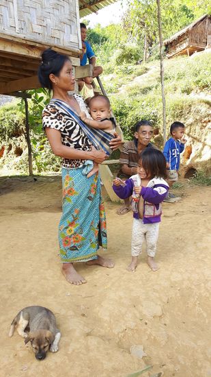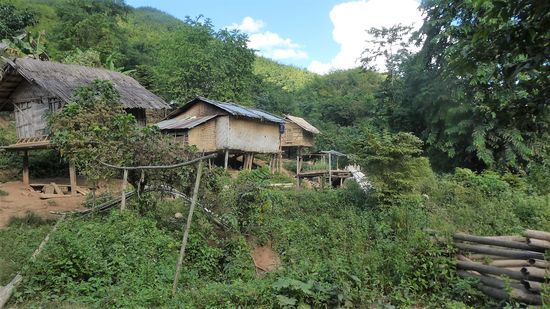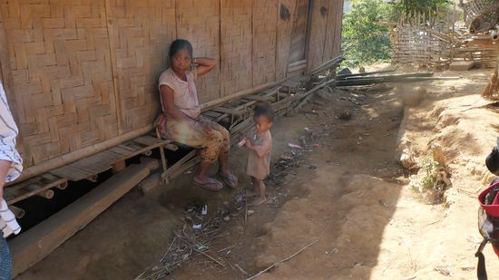 Wir machen halt und besuchen ein Khmu Dorf. Dort leben 22 Familien mit 175 Menschen insgesamt. Die Khmus sind Animisten, glauben also an Geister.