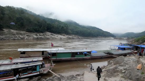 Wir halten in Pakbeng, einem eine Straße-Dorf. Ziemlich seelenlos. Das Dorf lebt scheinbar ausschließlich von den Booten, die allesamt hier halten zur Nacht. Die Boote sind alle nicht beleuchtet und es ist natürlich zu gefährlich im Dunkeln zu fahren. Nichts interessantes zu sehen...