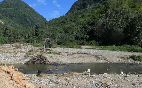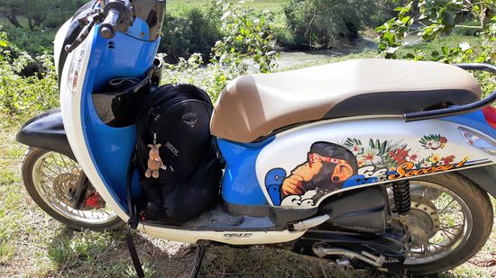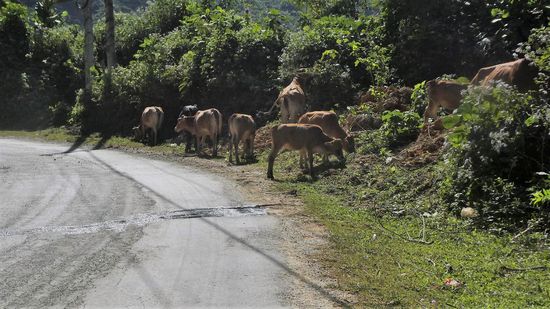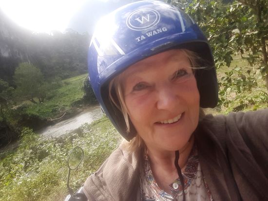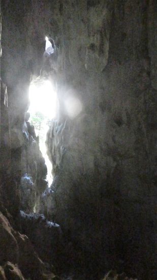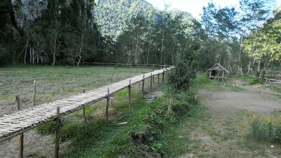 Ich miete einen Roller und fahre aus dem Dorf. Es gibt genau 2 Richtungen, dieses Dorf zu erreichen. Aus der einen Seite bin ich gekommen und mit dem Roller fahre ich jetzt die andere Straße weiter. Unterwegs schaue ich mir eine Höhle an. Ein junger Laote kommt mir schon entgegen und beflissen erklärt er mir, diese Höhle wurde als Versteck im Krieg benutzt. 500 Menschen haben sich hier vor den Amerikanern versteckt. Natürlich bekommt er sein Bakschisch.
