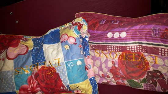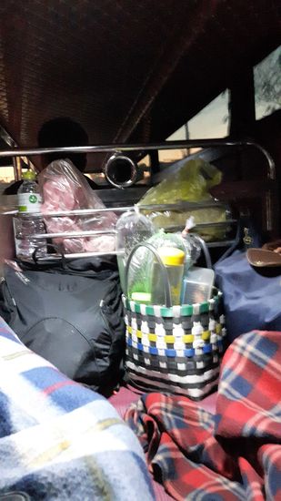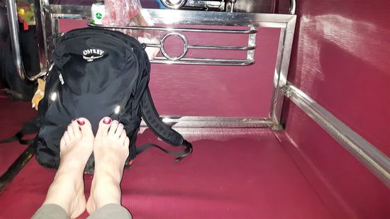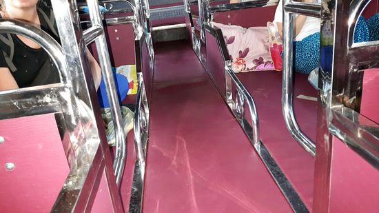 Beim Betreten des Busses Schuhe ausziehen. es ist alles ausgelegt mit plastikbezogenem Schaumstoff.