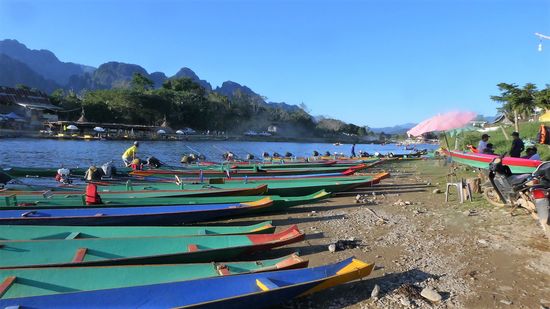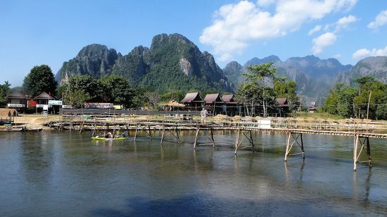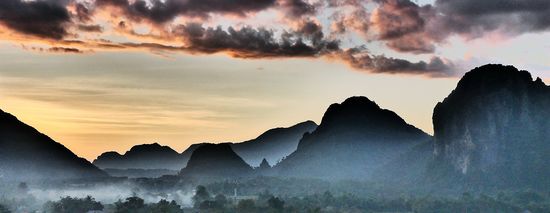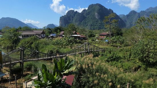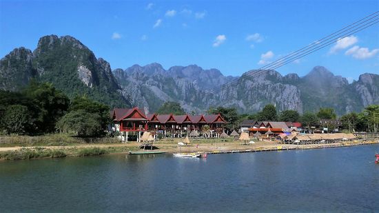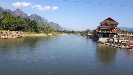 Vang Vieng liegt in wunderschöner Umgebung, rundum Berge.