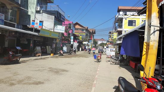 Das Tuktuk fährt ca. 1 Stunde bis Pak Mong, wo sich der Busbahnhof befindet.
