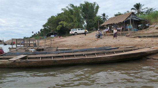 Von Champasak geht's weiter mit Tuktuk, Böötchen, Minivan nach Ban Nakasang zur Fähre nach Don Khon.
