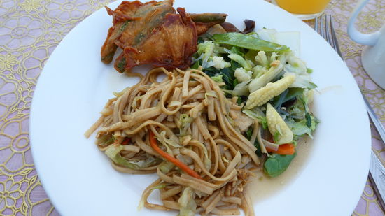 Das Frühstück ist nichts für Weicheier – den frühen Morgen schon mit Gemüse und Nudeln anzufangen findet nicht jeder gut. Ich mags – noch.