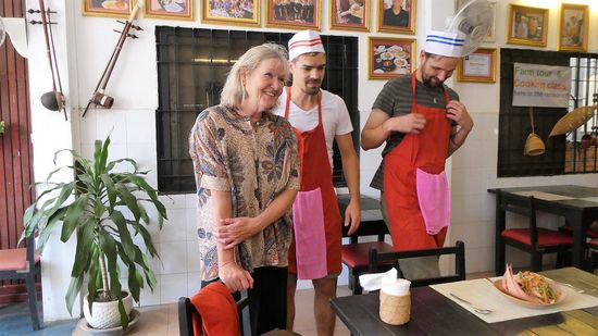Zuerst der obligatorische Marktbesuch, dann zurück ins Restaurant.Farmtour hat leider nicht stattgefunden. Vermutlich mangels Teilnehmern Mit mir 2 deutsche Jungs
