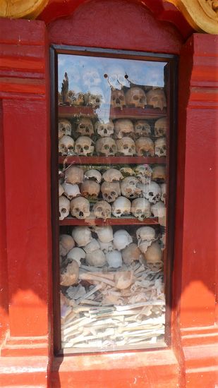 Ich habe den Wat Thmei besucht, ein kleines Killing Field mit einem Schrein mit vielen Gebeinen, Opfer der Roten Khmer unter Paul Pot.