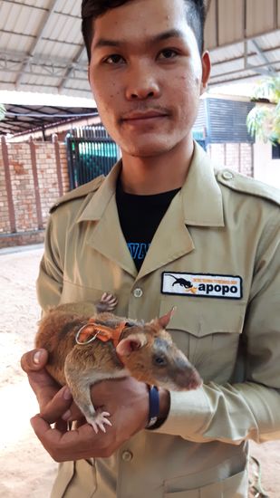 Ausgebildet in Tansania werden die Ratten in Gebieten eingesetzt, wo noch Minen im Boden vorhanden sind.