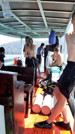 Viel Spaß mit Tom, dem Tauchlehrer und den anderen Tauchern..