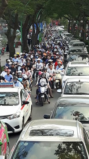 Hanoi hat 7 Millionen Einwohner und 5 Millionen Roller. Der Verkehr ist unsäglich.
