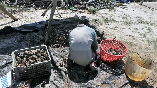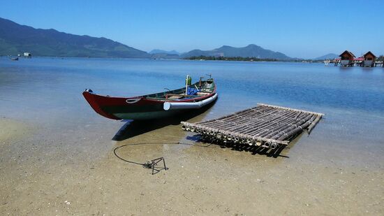 Fotostop und wer mag kann Perlen kaufen, hier werden Austern gezüchtet, also kann man auch Austern essen.