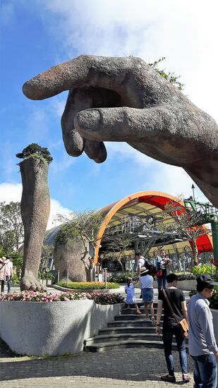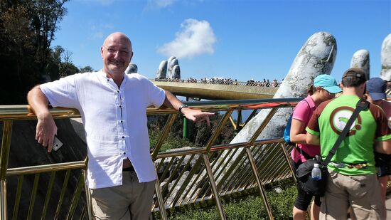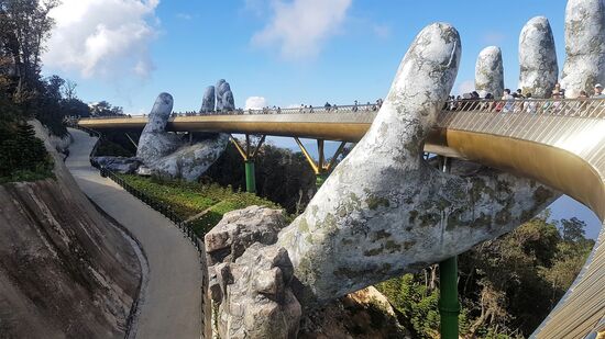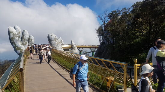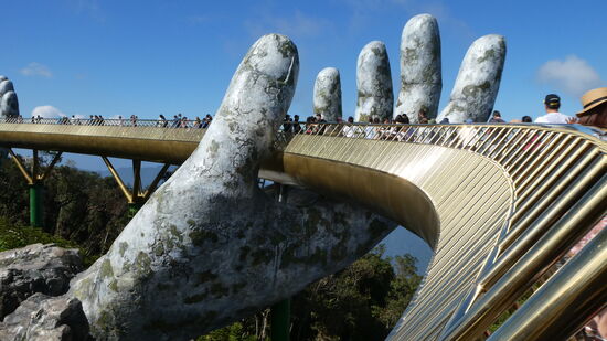 In Danang möchte ich noch die Golden Brigde besichtigen. Erst im letzten Jahr neu gebaut. Ich dachte, mal eben so im Vorbeifahren. Unser Fahrer klärt uns auf, dass die Brücke nicht in der Stadt liegt, sondern ausserhalb in Bana Hills. Gegen einen Preisaufschlag (für die private Kasse) fährt er uns in die Berge.
