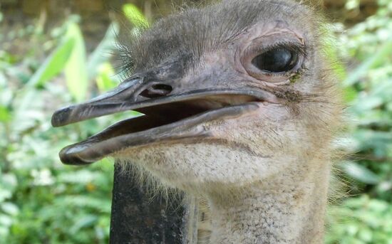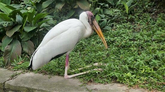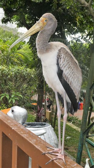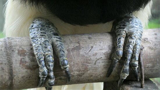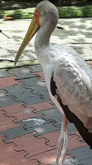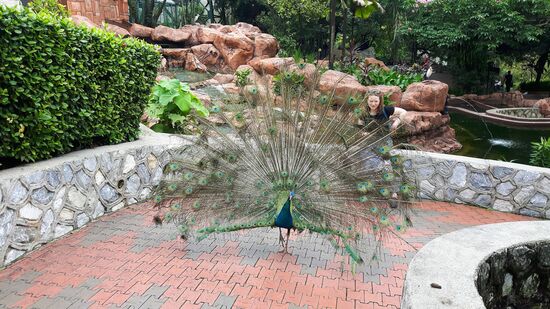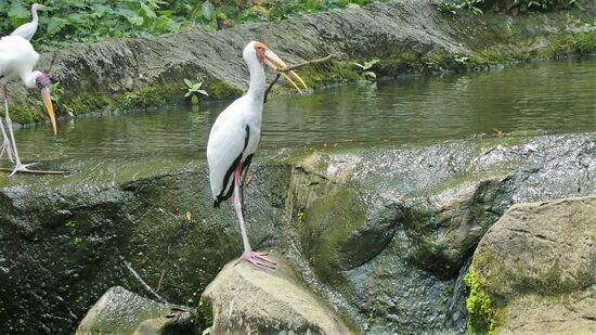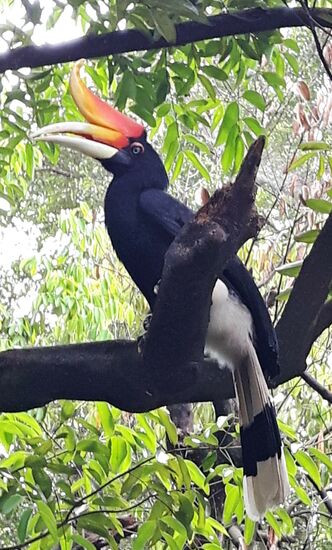 die Hornbills werden gerade gefüttert. Äußerst elegant schnappen sie die entgegen geworfenen Fruchtstückchen auf
