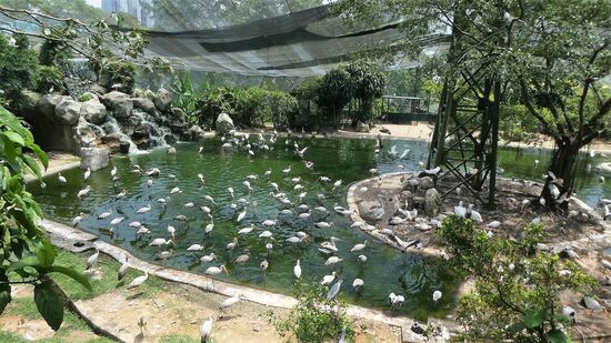 Unter riesigen Netzen können die Vögel frei fliegen.