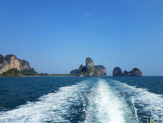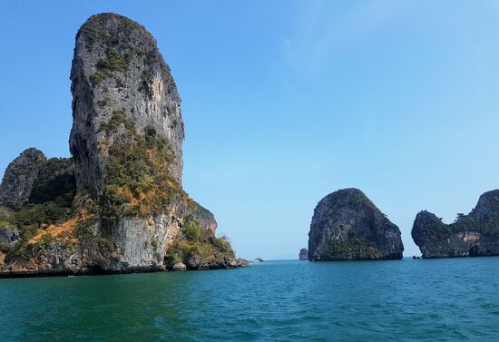 Wir schippern durch die Andamanensee, vorbei an vielen Felsen.