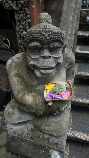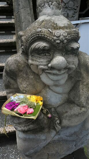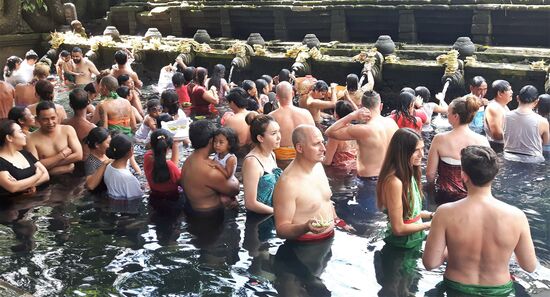 (Wiki) Die Tempelanlage besteht aus einer Petirtaan- oder Badeanstalt, die für ihr heiliges Quellwasser berühmt ist , in das sich die balinesischen Hindus zur rituellen Reinigung begeben . Der Tempelteich hat eine Quelle, die regelmäßig frisches Wasser abgibt , das die balinesischen Hindus für heilig oder amritha halten .Tirta Empul bedeutet Heiliger Frühling auf Balinesen.