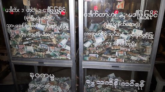 Das sind auf jeden Fall die Opferkästen. Überall, in jedem Tempel und vor jedem Buddha in jeglicher Form. Und die Leute spenden, auch die Ärmsten der Armen. Bringt gutes Karma.