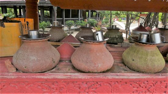 An den Straßen sind häufig kleine Stände mit großen Tonkrügen und Bechern zu finden, ebenfalls an jedem Tempel. Das ist Trinkwasser, kostenlos für alle.