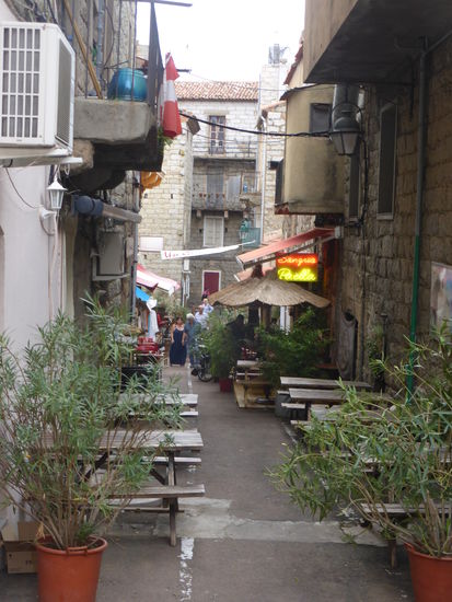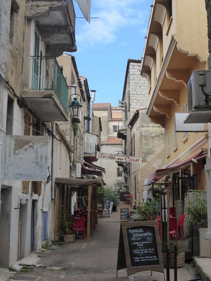 Im Ort angekommen stellen wir fest, dass der alte Ortskern mit Teilen der Zitadelle recht klein ist. Auch hier reihen sich wieder Souvenirshops und Restaurants in den Gassen aneinander. Die Kontrolle der Speisekarte des ausgeguckten l’Antigu läßt unseren bereits gefaßten Entschluss, heute dort essen zu gehen, endgültig werden; wir reservieren für 13.00 Uhr.