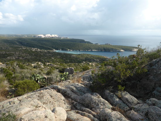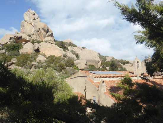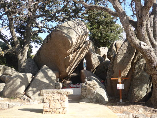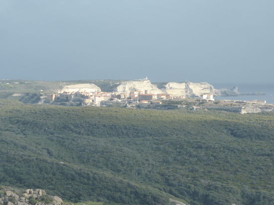 Für die Rückfahrt nehmen wir uns nur noch eine Erimitage le Trinité an der Südküste vor. Auch hier müssen wir den Abzweig wieder suchen, aber schließlich finden wir hin – wieder tolle Knubbellandschaft, aber das kleine Kloster, zu dem im September gewallfahrtet wird, ist geschlossen. Trotzdem genießen wir den Blick auf Bonifacio, das zwischen dunklen Wolken in der Sonne glänzt.