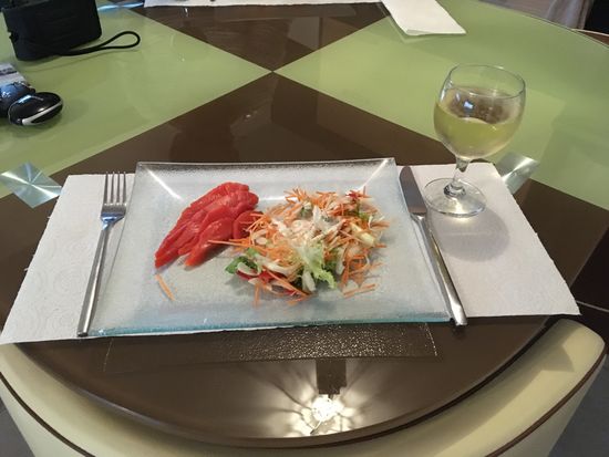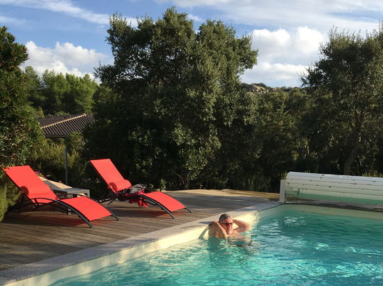 Im Heimatort kauft Ulrike dann die Korsische Charcuterie auf, wir tanken ein zweites Mal und ich nutze die Gelegenheit zu einem Bad im Pool, den ich ganz für mich allein habe. Abends gibt es dann noch den Rest Salat von vorgestern mit einer Portion Räucherlachs.