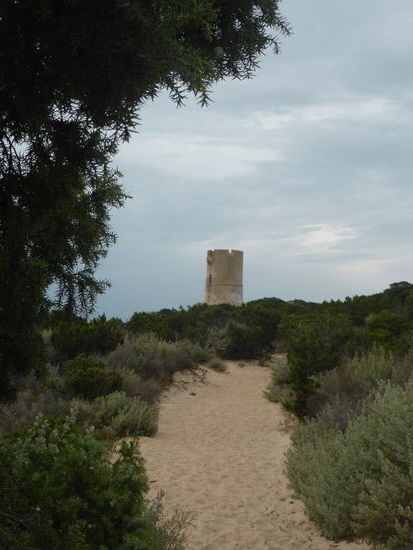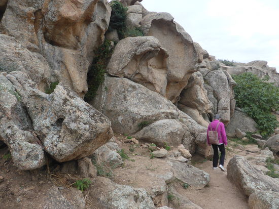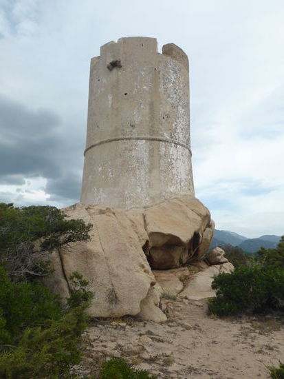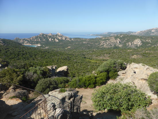 Heute soll es den ganzen Tag regnen, daher nehmen wir uns nur noch die Reste vor, die wir bislang nicht geschafft haben. Da wäre zunächst der Turm von Olmeta, der etwas abseits der Straße liegt, dessen Abzweig wir zwar finden, aber uns zunächst der Weg unsicher erscheint. Deshalb fahren wir zunächst zur Casa de Roccapina, wo ein Rundweg zu einem Belvedere abzweigt, den wir dann auch begehen.