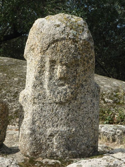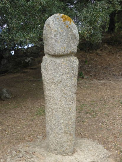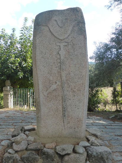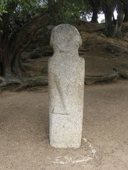 Im Südwesten der Insel breitete sich gegen 3500 v.Chr. eine Kultur aus, deren Lebensweise sich nicht grundsatzlich vom Neolithikum unterschied;: die Toten wurden jedoch in mehr oder weniger ebenerdig eingelassene« Steinkisten beigesetzt und später in oberirdischen Dolmen aus behauenen Steinplatten. 2-4m große Stelen (Menhlre) wurden nebenden Grabstätten errichtet. Die ersten Steinreihen tauchten um 2000v.Chr. auf. Zwei Jahrhunderte später zeigte sich eine großer Entwicklungssprung: Der noch ungestaltete Menhir erhält menschliche Umrisse. Dieser anthropomorphe Menhir ist bereits mehr als eine Stele, jedoch noch keine Statut Der Kopf ist angedeutet und vom Rumpf abgesetzt, die Schultern sind zu erkennen und er hat die Größe eines Menschen. Die Welterentwicklung zur Statue markiert einen wichtigen künstlerischen Fortschritt: Das Gesicht ist nun deutlich modelliert mit Augen, Nase und Mund. Wiederum zwei Jahrhunderte später (etwa 1600v.Chr.) erfahren die Menhirstatuen (französisch: statues-menhirs) einen weiteren revolutionären Entwicklungsschritt: Sie weisen anatomisch exaktere Details auf (Wirbelsäule und Schulterblatt) und Waffen wie Dolch und Schwert werden deutlich hervorgehoben. Im Norden der Insel stellten die Menschen dagegen unbewaffnete Statuen mit breiten Schultern, abstehenden Ohren und oft einer Halskette auf.