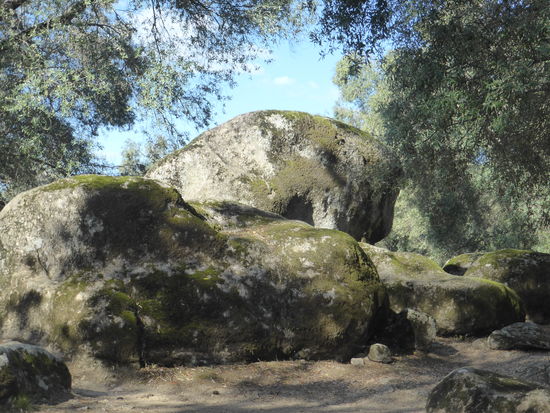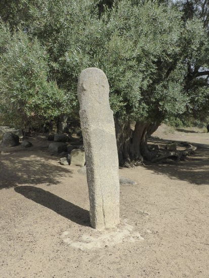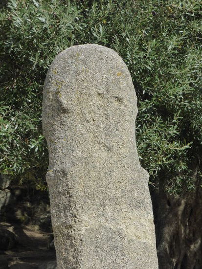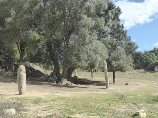 Ein (etwas steiler) Weg nach unten führt in das grüne Tal, in dem fünf Menhirstatuen vom Ende des Megalithikums um einen alten Ölbaum aufgestellt wurden. Ein idyllisches Fleckchen, das eine ungewöhnliche Ruhe ausstrahlt.