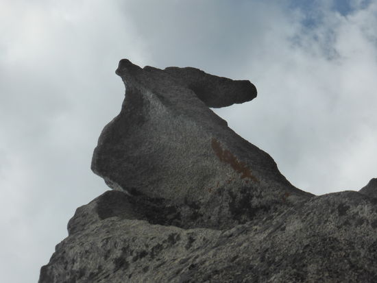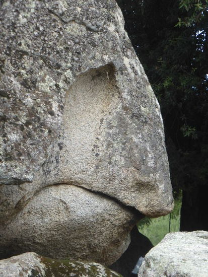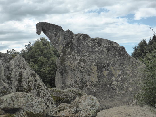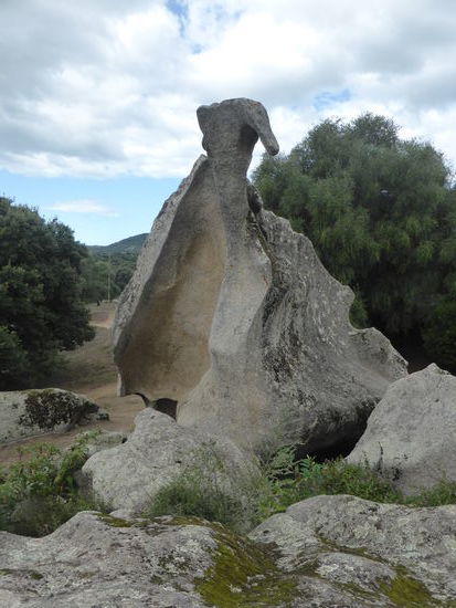 Etwas weiter liegt der Steinbruch, aus dem die Menhirstatuen geschlagen wurden; einer der Felsen hat aufgrund seiner Form den Namen „Dinosauier" erhalten.