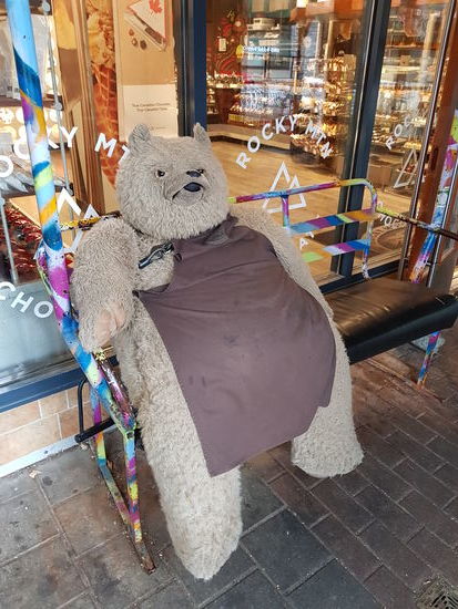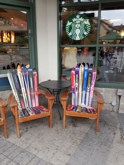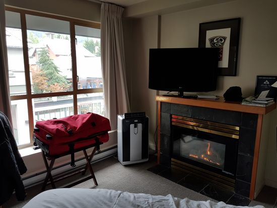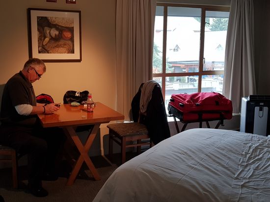 Eigentlich stand heute die Peak 2 Peak Gondelbahn auf dem Programm, aber die ist Dank des Sauwetters gesperrt. Wir sind nicht böse drum. Also machen wir heute Urlaub vom Urlaub und machen außer bummeln, essen und Hörbuchhören mal gar nichts und erholen uns. Nach einer Anfrage in der Lobby wird sogar der Gaskamin im Zimmer angestellt. Bei 11 Grad und Dauerregen genau richtig und sehr gemütlich. Essen besorgen wir uns mal wieder im Supermarkt (Sushi, Sandwiches und Frühlingsrollen) und gönnen uns nachmittags noch ein Stück überteuerten Kuchen im Kaffee. Ein gemütlicher Tag!