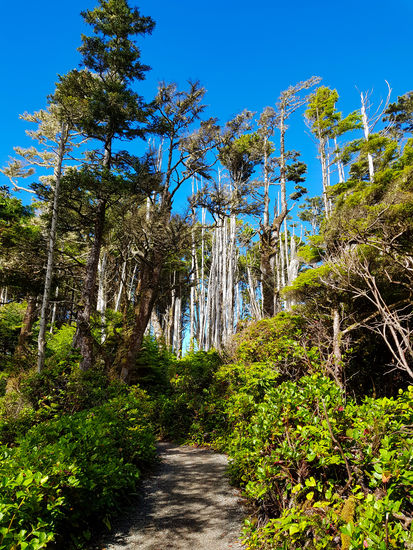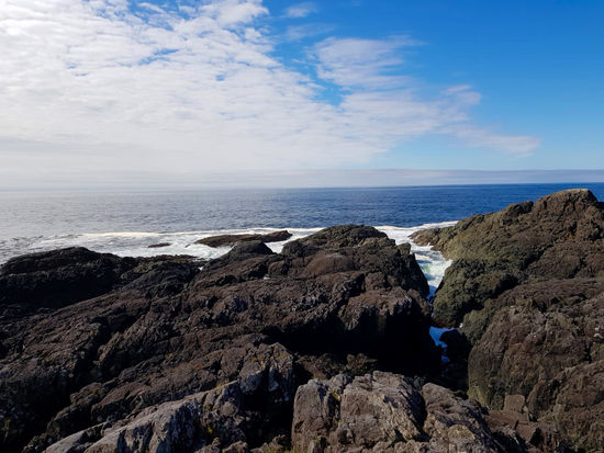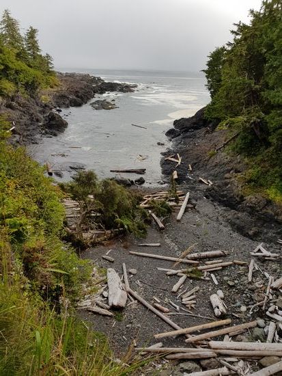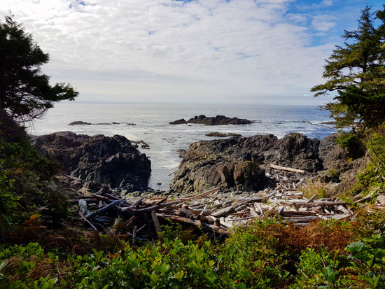 Dann geht es weiter auf dem Wild Pacific Trail Richtung Rocky Bluffs. Der Weg führt hoch und runter, immer wieder mit Blick auf den rauen Pazifik.
