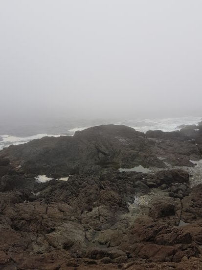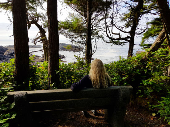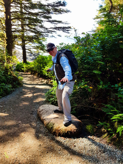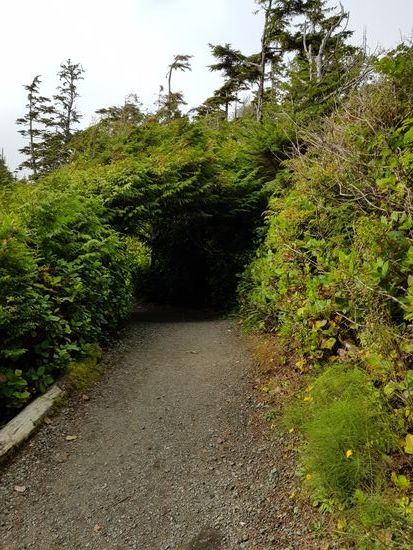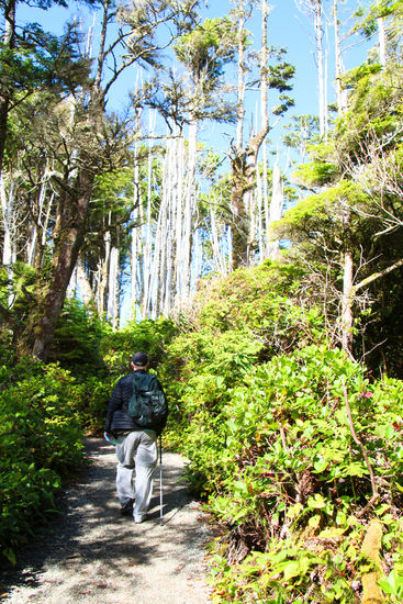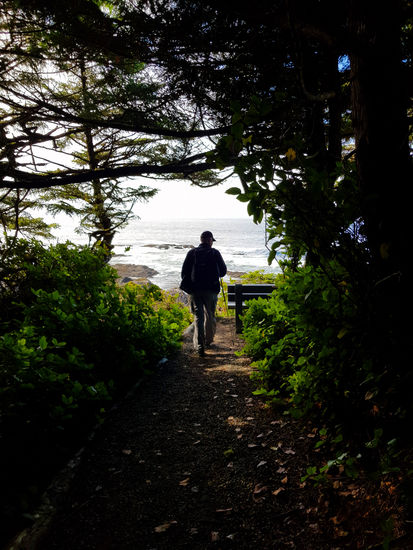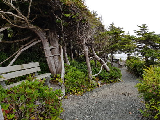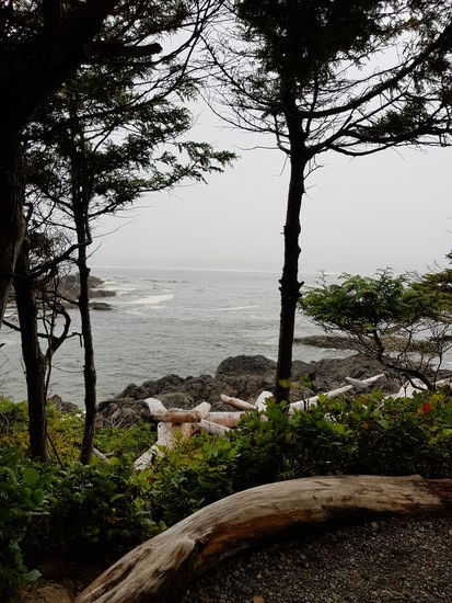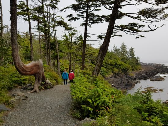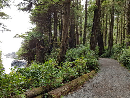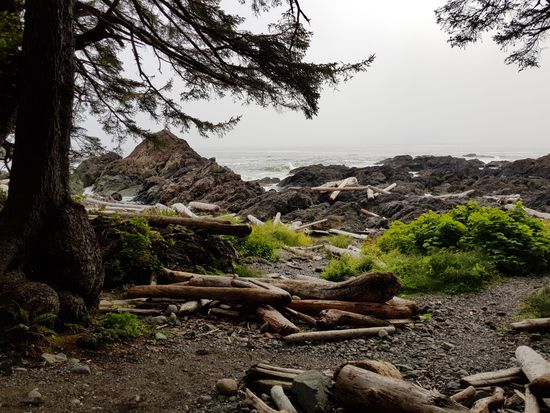 Später möchte Thomas nicht mehr aus dem Hotel. Ich gehe daher allein nochmal auf dem Wild Pacific Trail, diesmal den ersten Teil. Inzwischen ist Nebel aufgezogen und man sieht das Meer kaum.