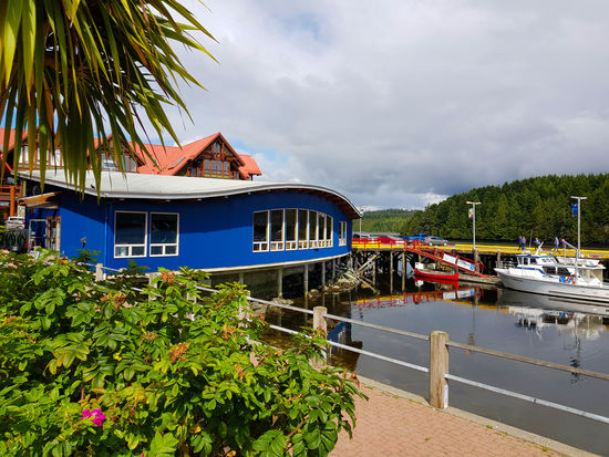 Anschließend fahren wir zurück nach Ucluelet, einem kleinen Touri/Fischerdörfchen, deutlich ruhiger als Tofino. Wir fahren zum Aqaurium und lassen uns bei Jamie's Walewatching unsere Tour für morgen bestätigen. Wir sollen um 11.00 Uhr da sein.