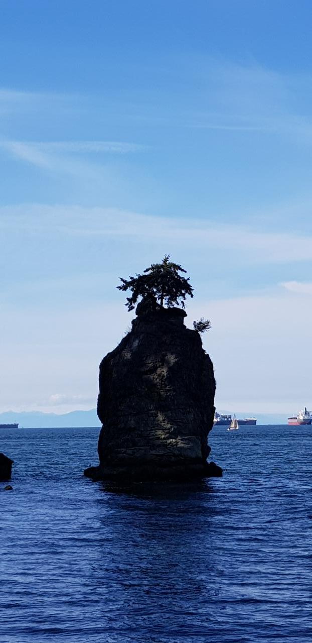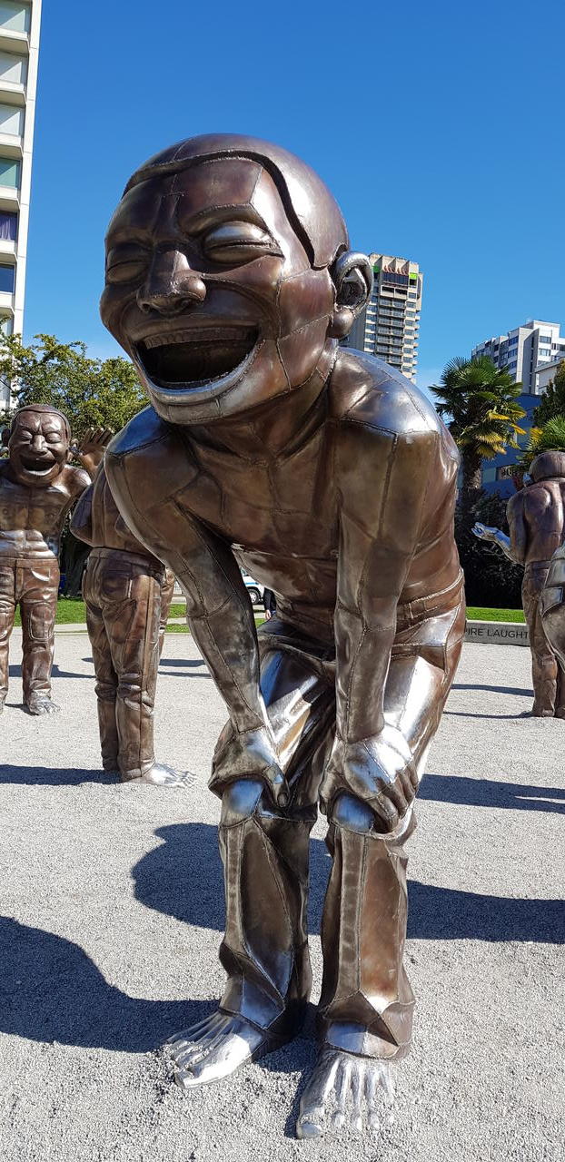 Am Third Beach machen wir eine Pause und fahren dann zur English Bay, wo wir versuchen, die lachenden chinesischen Figuren nachzumachen.