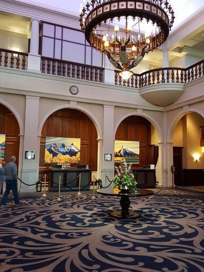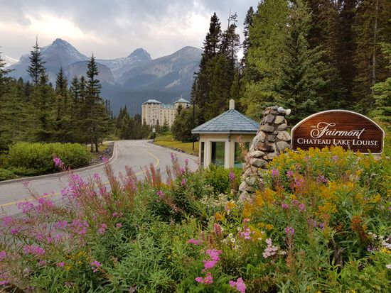 Zum Aufwärmen gehen wir in das feudale Chateau Lake Louise und trinken einen Kaffee.