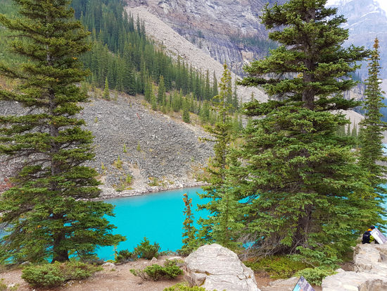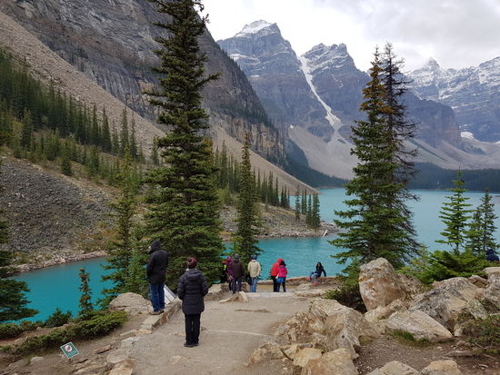 Dann geht's zurück in unser Hotel zum Auschecken. Anschließend fahren wir zum Lake Morraine. Heute haben wir Glück und die Zufahrt dorthin ist frei, weil noch freie Parkplätze vorhanden sind.
