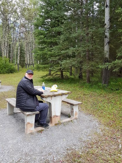So fahren wir weiter Richtung Banff. Wir wechseln auf die 1A, die parallel zum Trans Canada Highway verläuft, aber landschaftlich viel mehr bietet. Man darf dort auch nur 60 km/h fahren. Wildlife sehen wir dort aber leider keins. Auch hier riecht der Wald leider nach gar nichts. Wir machen ein kurzes Picknick und fahren dann weiter nach Banff.