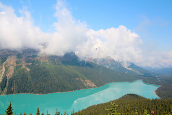 Dann geht's weiter zum Peyto Lake. Mit Mühe ergattern wir einen Parkplatz. Mir tun die armen Leute mit Campern leid, die finden hier keine Haltemöglichkeit... Kanada ist einfach überlaufen!