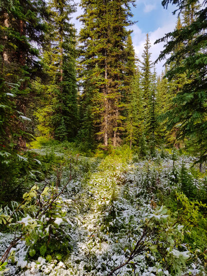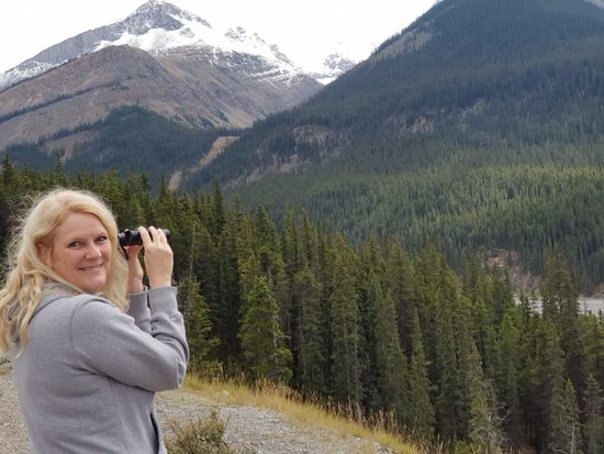 Dann fahren wir los auf den Icefields Parkway. Bei Lake Louise hört es auf zu regnen. Es ist eiskalt, nur 4 Grad.