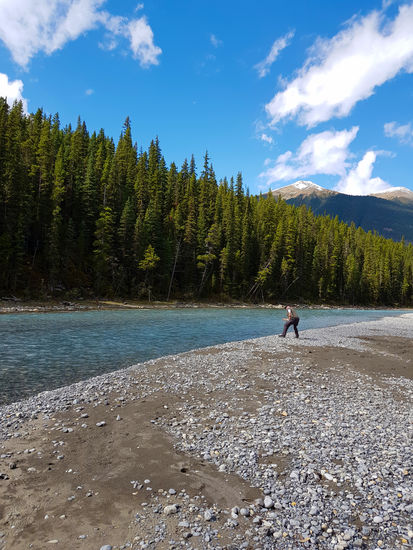 Am Coleman Creek machen wir ein Picknick. Auch hier sind nur wenige Menschen und wir genießen die Ruhe und die Natur. Die Picknick Area liegt direkt am kristallklaren Alexandra River. Die Bergblumen blühen und Thomas übt Steinewerfen...