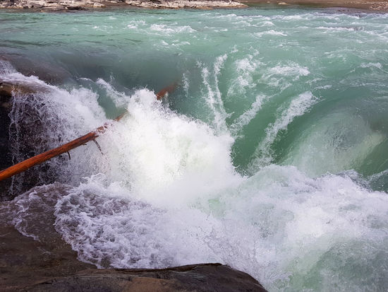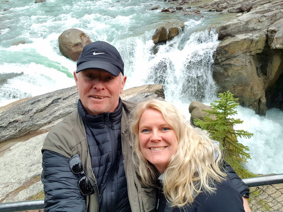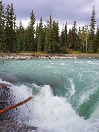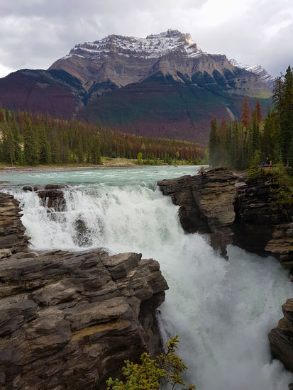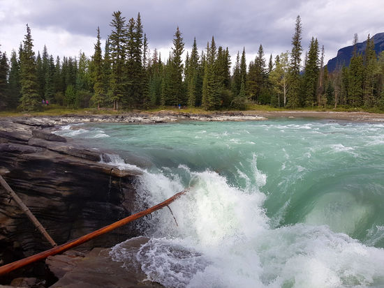 An den Athabasca Falls halten wir nochmal an. Diese sind breiter, aber nicht weniger beeindruckend.