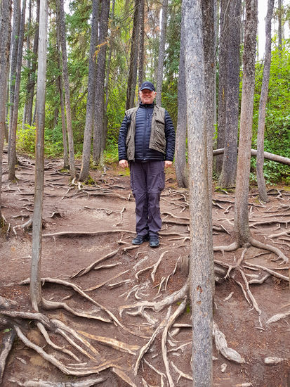 Danach fahren wir durch bis nach Jasper. Es ist bereits 16.30 Uhr. Im Hotel Lobstick Lodge finden sie zunächst unsere Reservierung nicht. Der Mann an der Rezeption muss erst telefonieren und wir 5 Minuten warten. Dafür bekommen wir ein Upgrade und damit ein riesiges Zimmer mit Küche. Leider ist das Hotel ein Altbau und die Lüftung, die man nicht ausschalten kann und zentral durch alle Zimmer zirkuliert, zirpt laut und bläst heiße Luft raus. Man kann förmlich die Bakterien aus dem dreckigen Lüftungsschacht hüpfen sehen.... Insgesamt ist es hier durch die Holzwände sehr hellhörig aber wir müssen damit leben. Es gibt Schlimmeres.