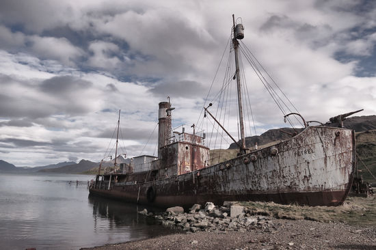 Es ist ein Spätsommertag in Südgeorgien. Die Sonne scheint von einem wolkenlosen Himmel, während wir von der Fortuna Bay ausgehend, ein Stück des Shackleton Trails laufen. Es ist einfach unglaublich, die Sonne stralht von einem stahlblauen Himmel und die Temperaturen klettern in der Sonne auf 19 Celsius. Remember. We are in the polar region! Der Pfad führt über einen 500 Meter hohen Bergkamm, von dem aus man einen grandiosen Überblick auf die Schneebedeckten Berge und die beiden Buchten hat, wieder hinunter zur Stromness Bay. Auch hier leben Königspinguine, Eselspinguine und Robben. Zurück auf dem Schiff gibt es Mittagsbuffet und ein Briefing. Dann folgt ein Vortrag des „South Georgia Heritage Trust“. Dann schlüpfen wir wieder in unsere Gummistiefel, legen uns die Rettungswesten an und werden vor Besteigung der Zodiaks noch einmal gebrieft. Am Strand der Cumberland Bay in Grytviken werden wir dann noch einmal in alles eingewiesen, was verboten ist. Einigermaßen gut gebrieft, betreten wir Grytviken. Das für uns einzig wirklich interessante an dieser Landestelle, sind die Seeelefanten, die wir hier zum ersten Mal sehen. Die Nostalgiker bringen am Grab von Sir Ernest Shackleton einen Tost aus und kippen sich einen Schluck Fusel hinter die Binde. Wem das noch nicht genug Geschichte war, in der denkmalgeschützten Walfangstation von Grytviken gibt es eine vollständig restaurierte norwegische Kirche, ein Walfangmuseum und jede Menge Schrott aus der Zeit, in der in Südgeorgien bis 1965, 175.250 Wale getötet und verarbeitet wurden. So nebenbei tötete man noch 5.000 Roben pro Jahr. Heute wird der Ort, abgesehen von sechs Saisonarbeitern, nur noch von Robben, See-Elefanten und Pinguinen bewohnt.