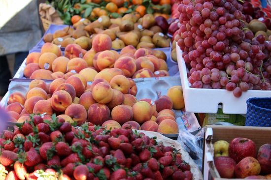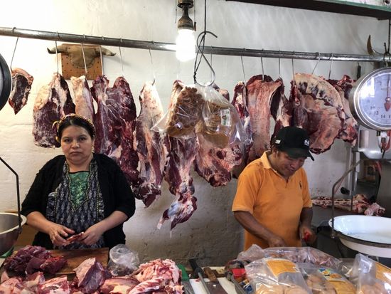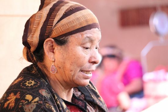 Und immer wieder Kinder dazwischen. Auf dem Rücken der Mutter oder an deren Rock hängend. Fleisch hängt offen am Haken, da drüben formt eine junge Frau Würste, dort werden abgepackte Lebensmittel an einem Stand verkauft, und daneben gibt es einen Getränkestand. Hinter dem Gemüsestand rüstet eine Frau Peperoni und Karotten zu kleinen Würfeln und mischt sie zusammen mit Erbsen. Es gibt getrocknete Paprika in allen Farben und Formen, verschiedene Gewürze, Piniennadeln, Palmblumen in den langen braunen Hüllen. Wir haben uns längst aus den Augen verloren und treffen an irgendeiner Ecke plötzlich wieder auf ein vertrautes Gesicht.